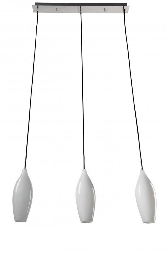 Wysokość: maks.180cm. Średnica: 30cm. Wykończenie: chrom, szkło białe Żar. 3x40W E-14 ( nie ma w komplecie ), możliwość zastosowania LED