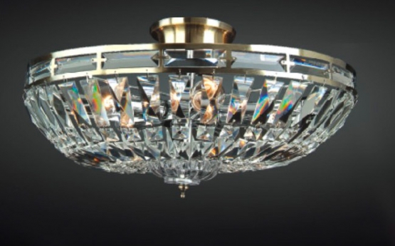 Materiał wykonania: szkło oraz stop metalu Rodzaj szkła: kryształ Kolor: chrom Średnica: 48 cm Wysokość: 22.5 cm Gwint: E14 Moc maksymalna: 40W Ilość źródeł światła: 5